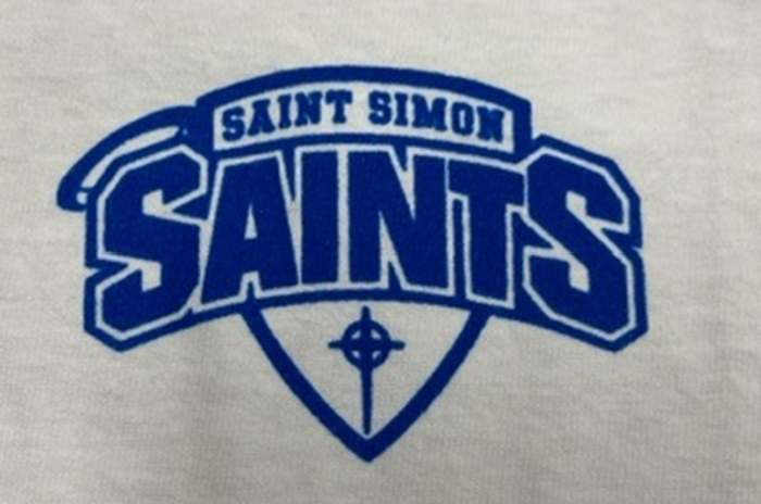 • With heat press new St. Simon school logo